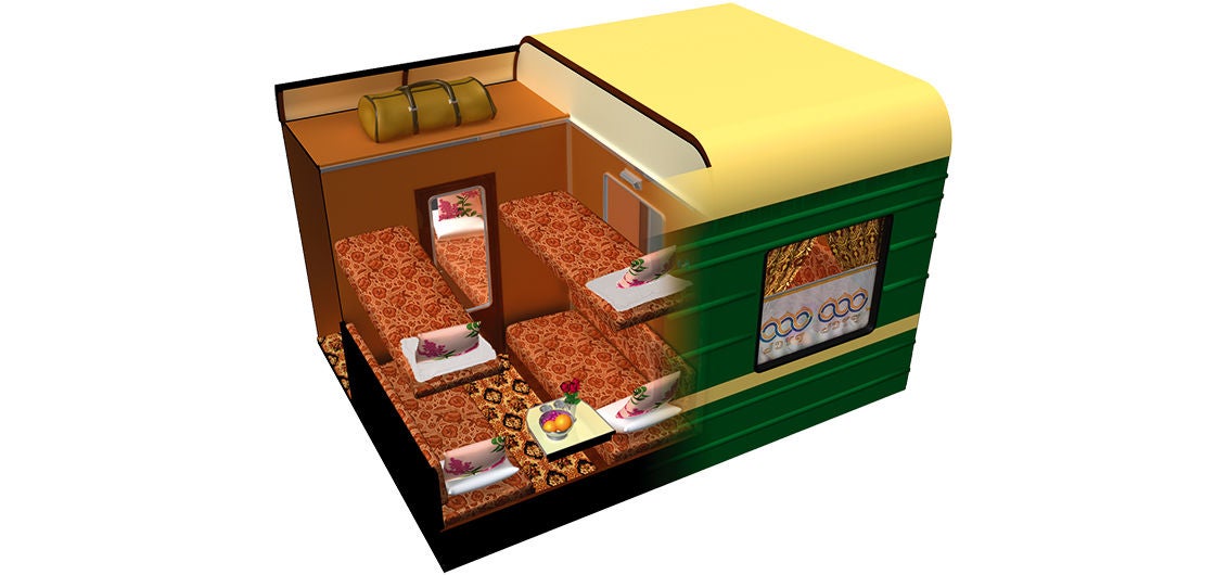 Standard Cabin betekent in een rijtuig dat er 9 cabines voor 4 personen per coupé zijn met sanitaire voorzieningen aan het eind van het rijtuig. De luxere klasses bieden eigen toilet en/of douche.